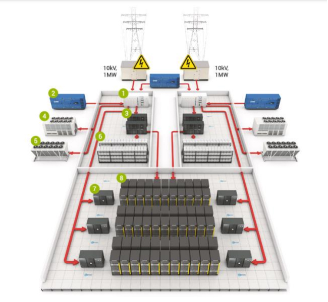 其中动力配电包括高低压配电、开关电源、UPS、ATS、蓄电池、发电机、照明等;